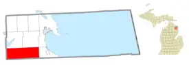 ![]() A la izquierda, ubicación entre las subdivisiones administrativas del condado de Alpena. A la derecha, ubicación del condado de Alpena en el estado de Míchigan
