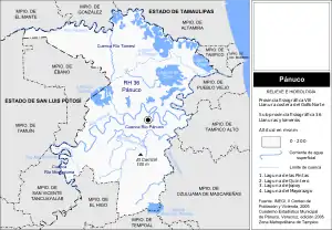 El territorio municipales sumamente rico en el ámbito hidrológico, su principal corriente es el río Pánuco, uno de los más caudalosos de México y que recorre el municipio en sentido suroeste-noreste, pasando por la cabecera municipal, el segundo río en importancia del territorio es el río Tamesí, un afluente del Pánuco y que se encuentra en el norte del municipio marcando el límite estatal con Tamaulipas, existen además numerosas lagunas, entre ellas la Laguna Las Pintas, Laguna Quintero, Laguna Jopoy, Laguna La Tortuga, Laguna Mayorazgo y Laguna del Chairel, ubicadas todas al norte junto al río Tamesí, además se encuentra la Laguna La Chila, Laguna Morland, Laguna Nacatá, Laguna Tanchicuin, Laguna Las Olas y Laguna Montesillos ubicadas al centro del municipio y finalmente la Laguna Paso de Piedras en el extremo sur del territorio.[7]