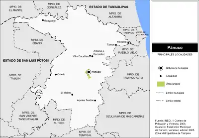 El municipio de Pánuco tiene una totalidad de 593 localidades, las principales y su población en 2005 son las siguientes: