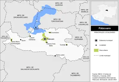 - Instituto Nacional de Estadística y Geografía (2003). «Cuaderno Estadístico Municipal de Pátzcuaro, Michoacán de Ocampo. (Mapas)». Consultado el 2010.