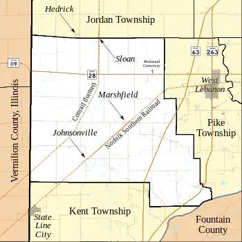 Está ubicado en las coordenadas 40°15′29″N 87°27′38″O. Según la Oficina del Censo de los Estados Unidos, el municipio tiene una superficie total de 102,50 km², de la cual 102,43 km² corresponden a tierra firme y 0,07 km² es agua.[3]