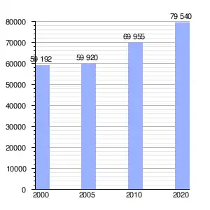 Gráfica de evolución demográfica de Municipio de Tacámbaro entre 2000 y 2020
