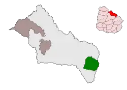 El municipio se encuentra localizado en la zona sureste del departamento de Rivera.