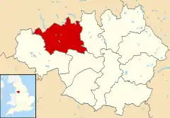 | Los distritos del gobierno local que rodean al Municipio Metropolitano de Bolton | |||||