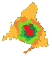 El Consorcio Regional de Transportes de Madrid (CRTM) divide la Comunidad de Madrid en seis zonas a efectos de tarificación, con otras dos zonas cubriendo parte de las provincias de Guadalajara y Toledo (Castilla-La Mancha). Estas ocho zonas corresponden a la ciudad de Madrid (A), a la corona metropolitana (B1, B2, B3), a la corona regional (C1, C2) y a otras zonas fuera de la Comunidad de Madrid (E1, E2).