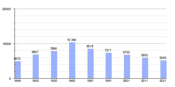 | Gráfica de evolución demográfica de Murça entre 1849 y 2021 |