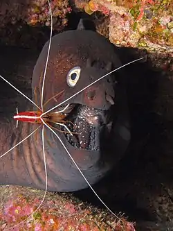 ![]() Muraena augusti junto con Lysmata grabhami | ||