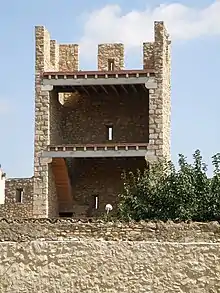 - La Torre de las cinco esquinas. Tal y como indica el nombre, es la única torre que tiene base pentagonal y cinco caras, cuatro de ellas de piedra. Está situada en el extremo noreste del recinto y permitía vislumbrar buena parte de la Cuenca de Barberá.