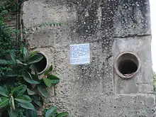 - La inscripción del azulejo mantiene: Muralla de la ciudad de época islámica (s. XI-XII), que contiene las conducciones que en el periodo cristiano suministraban agua al Real Alcázar y a la ciudad. Restaurada por la Gerencia de Urbanismo del Ayuntamiento de Sevilla gracias a la colaboración de Texsa en 1993.
