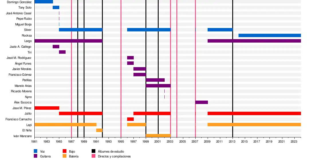• Silverio Solórzano "Silver": Vocalista en todas las etapas de la banda a partir de 1985, hasta diciembre de 2013. Grabó todos los lanzamientos oficiales de Muro hasta la fecha.