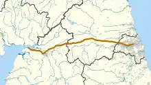 El Muro de Adriano se extendía hacia el oeste desde Segedunum, en Wallsend, en el río Tyne, pasando por Carlisle y Kirkandrews-on-Eden, hasta la orilla del fiordo de Solway, terminando a una distancia corta pero desconocida al oeste de Bowness-on-Solway.[13] Las carreteras A69 y B6318 siguen el curso de la muralla desde Newcastle upon Tyne hasta Carlisle, y luego a lo largo de la franja norte de Cumbria, en la orilla sur del fiordo de Solway.