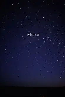 Musca (‘Mosca’ en latín) es una pequeña constelación del hemisferio celeste sur. La constelación fue creada por Pieter Dirkszoon Keyser y Frederick de Houtman entre 1595 y 1597, y apareció ilustrada por primera vez en un atlas celestial en la obra Uranometria de Johann Bayer de 1603.