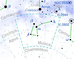 | Estrella más brillante | Alfa Muscae (mv 2,69) | |