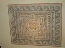 Mosaico geométrico de la Villa de las Tiendas depositado en el Museo de Badajoz, procedente de una de las villas romanas del término municipal de Badajoz