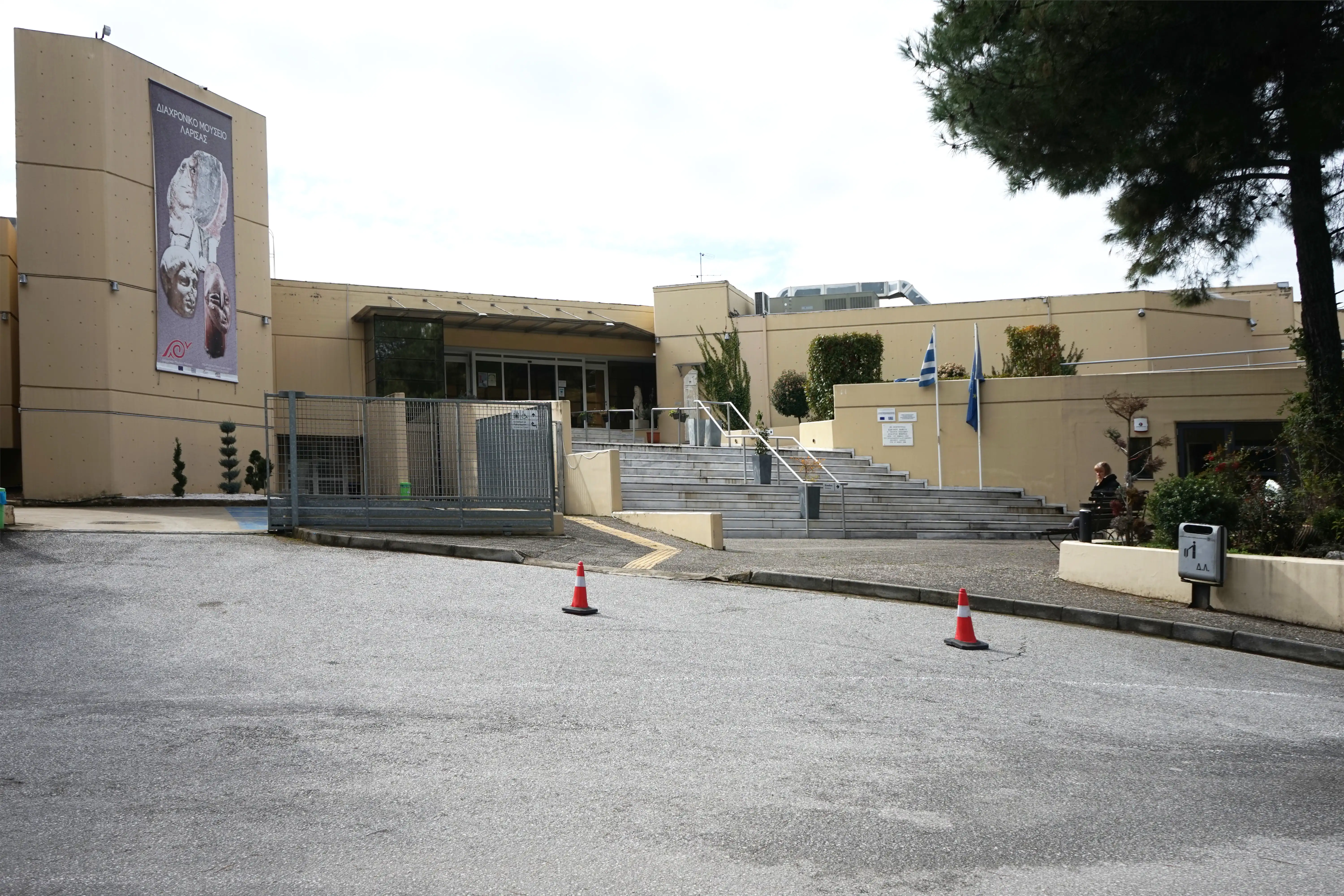 El edificio del museo se encuentra en una colina, en un área circundada por un bosque de pinos. Consta de tres pabellones entre los que hay espacios ajardinados. Uno de los pabellones alberga el área de recepción, un auditorio para eventos, y otros servicios para los visitantes como una tienda y una cafetería. Otro de los pabellones es donde se encuentran las oficinas del Eforado de Antigüedades de Larisa y una biblioteca. El tercer pabellón, más grande, es el que contiene las salas de la exposición permanente, áreas de exposiciones temporales y talleres de conservación.[2]