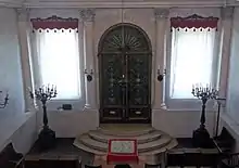 La sinagoga neoclásica, que data de 1855, está precedida por el vestíbulo, donde se colocan los objetos más preciados del museo:[8]