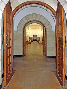 Las galerías principales corren paralelas al patio central. Son amplias, altas y rectangulares; con largas ventanas a lo alto, asegurando así la luz diurna durante las horas de visita. Los techos están diseñados con medallones, al igual que los techos de la antigua Roma.