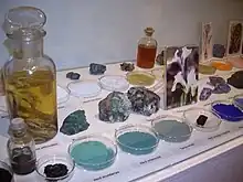 La primera dependencia está adornada con pinturas del siglo XIX que esconden una decoración anterior de época barroca, la temática tiene que ver con el uso de la sala: unas doncellas recogen frutos y plantas medicinales. En las paredes hay armarios y estantes de madera policromada para almacenar medicamentos. Junto al mostrador, una pequeña puerta separa el laboratorio. Dentro de la farmacia se conserva también una extraordinaria colección de botes de cerámica, una de las más importantes de Cataluña,[7] y botes de vidrio soplado, cajas de madera de herbarios, material quirúrgico de los siglos XVII y XVIII, morteros y tratados sobre farmacia, química y botánica.