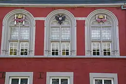 También en esta época fue agregada en el lado del patio una arcada en el estilo del renacimiento liejés. Esta parte del edificio parece similar al patio del Palacio de los Príncipes-Obispos de Lieja. Un arco amplio da entrada al patio. El arco está decorado con medallones que muestran (probablemente) los retratos de Carlos I, de su esposa Isabel de Portugal y de su hijo Felipe II de España. Carlos I y Felipe II permanecieron aquí en varias ocasiones.[1] Fue probablemente en este edificio donde Alejandro Farnesio, duque de Parma y gobernador de los Países Bajos, firmó la declaración que proclamó fuera de la ley a Guillermo de Orange, líder de la rebelión que desembocó en la Guerra de los Ochenta Años.