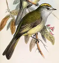 - Vieillot, L.P. (1817). Nouveau Dictionnaire d’Histoire naturelle, appliquée aux arts, à l'agriculture, à l'économie rurale et domestique, à la médecine, etc. (en francés). Tomo 11. 602 pp. + 6 tt. París: Deterville. Sylvia viridicata, p. 171 Disponible en Biodiversitas Heritage Library.