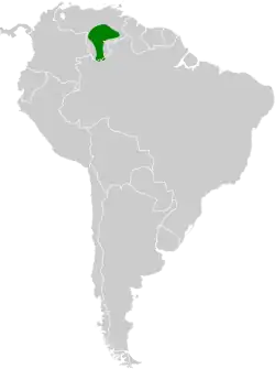Se distribuye en el centro y sur de Venezuela y extremo norte de Brasil.[4] Ver más detalles en Subespecies.