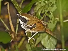 ![]() | Myrmoderus loricatus | (Lichtenstein, 1823) | hormiguero enmascarado | LC |