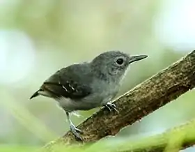 ![]() Hormiguerito plomizo (hembra) (Myrmotherula assimilis) en Iranduba, estado de Amazonas, Brasil. | ||