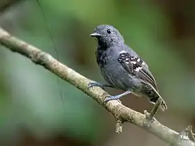 ![]() Ejemplar macho de hormiguerito de Salvadori (Myrmotherula minor) en São Sebastião, estado de São Paulo, Brasil. | ||