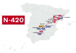 La N-420 es una carretera perteneciente a la Red de Carreteras del Estado (España). La vía, que une Córdoba y Tarragona por Cuenca, es una de las más largas de España con sus 808 kilómetros y sigue el trazado de una antigua calzada romana que unía Corduba con Tarraco. Básicamente sigue el trazado de la Vía Augusta del viejo imperio. Es una carretera nacional española que atraviesa el país desde el centro de Andalucía hasta el sur de Cataluña, empezando en Montoro, provincia de Córdoba, y terminando en Tarragona, provincia de Tarragona. En su recorrido pasa por Castilla-La Mancha, Comunidad Valenciana y Aragón.