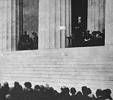 A partir de 1920, una estación de la Marina ubicada en Anacostia, D.C., NOF, comenzó a transmitir programas de entretenimiento ocasionales. Después de instalar un transmisor de tubo de vacío, NAA pronto siguió con un horario limitado propio. El 30 de mayo de 1922, NAA y NOF transmitieron conjuntamente las ceremonias de homenaje celebradas en el Lincoln Memorial, que fue la primera vez que dos estaciones transmitieron simultáneamente un mismo programa.[15]