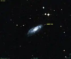 NGC 115 es una galaxia espiral barrada localizada en la constelación de Sculptor. Fue descubierta por el astrónomo británico John Herschel el 25 de septiembre de 1834. La galaxia está aproximadamente a 85 millones de años luz de la Tierra, y tiene un diámetro de aproximadamente 50.000 años luz, casi la mitad del tamaño de nuestra galaxia, la Vía Láctea.