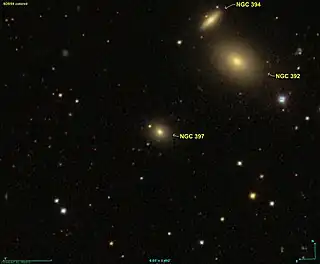 NGC 397 es una galaxia elíptica (Y?) localizada en la dirección de la constelación de Pisces. Posee una declinación de +33° 06' 35" y una ascensión recta de 1 horas, 08 minutos y 31,0 segundos.