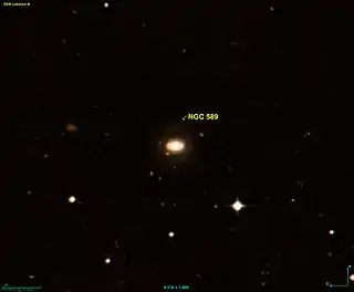 NGC 589 es una galaxia espiral (S0-a) localizada en la dirección de la constelación de Cetus. Posee una declinación de -12° 02' 32" y una ascensión recta de 1 horas, 32 minutos y 39,9 segundos.