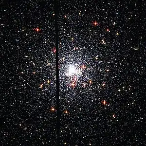Utilizando la Cámara de Objetos Tenues de la ESA a bordo del Telescopio Espacial Hubble se ha estudiado la luz ultravioleta de las estrellas del cúmulo.[1] Una de las estrellas, la más azul y caliente, es la más luminosa en luz ultravioleta. Se encuentra en la posición de una fuente de rayos X conocida como 4U 1820-30. Se sabe que esta fuente de rayos X es un sistema binario formado por una estrella de neutrones y una enana blanca, que completan una órbita la una alrededor de la otra en sólo once minutos. La radiación ultravioleta proviene del disco de gas que rodea a la estrella de neutrones.