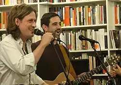 Nacho Vegas y Roberto Herreros en la presentación del libro de Belén Gopegui "El comité de la noche. Octubre 2014