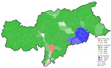 Algunos partidos políticos que abogan por la secesión del Tirol del Sur han alcanzado una cierta prominencia tanto a nivel local como nacional, entre ellos la Libertad Sudtirolesa, Die Freiheitlichen y la Unión de Ciudadanos del Tirol del Sur.[9] Estos partidos abarcan 10 de los 35 escaños del Consejo Provincial.