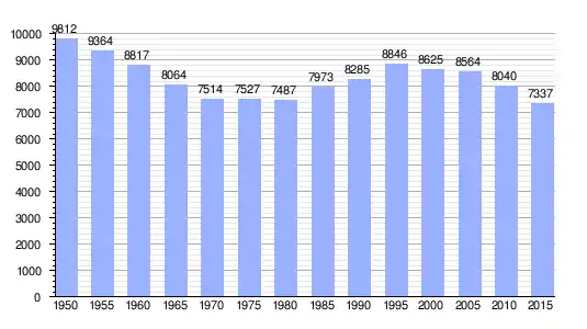 | Gráfica de evolución demográfica de Nagara entre 1950 y 2015 |
