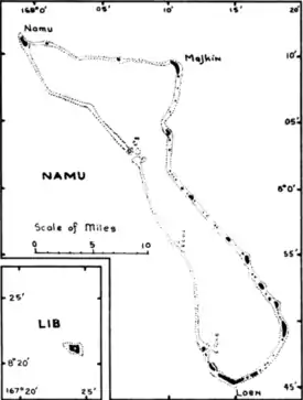 Namu es un atolón y un distrito localizado en la cadena de Ralik de las Islas Marshall. El atolón tiene una superficie de 6.27 kilómetros cuadrados que rodea una laguna de 397.12 kilómetros cuadrados. El atolón más próximo a Namu es Ailinglaplap, 40 kilómetros hacia el sur.