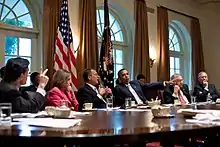 La elección de 2006 fue un llamado al cambio, no solo para cambiar el control del Congreso, sino a favor de una nueva dirección para nuestro país. En ninguna parte el pueblo estadounidense fue más claro acerca de la necesidad de una nueva dirección que en Irak. El pueblo estadounidense rechazó una obligación indefinida de una guerra sin fin.[37]
