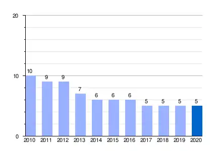 | Gráfica de evolución demográfica de Nandufe entre 2010 y 2020 |