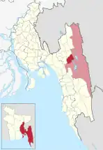 Se encuentra ubicado en al sureste del país, junto a la frontera con India y el lago Kaptai.