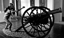 ![]() Escultura de Narciso Mendoza, representando el momento en el que encendió el cañón en contra del ejército realista (2024). | ||