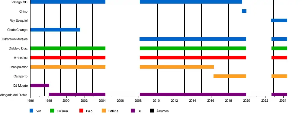 Vikingo M.D (voz) Chino (voz) Chato Chungo (voz) Manipulador (batería) DJ Muerte (DJ) | ||
