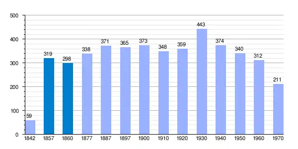 | Gráfica de evolución demográfica de Narrillos de San Leonardo[3] entre 1842 y 1970 |