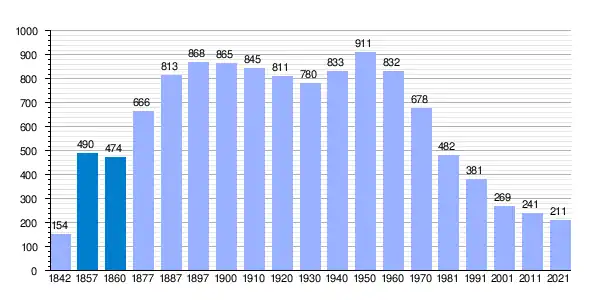| Gráfica de evolución demográfica de Narros de Matalayegua[6] entre 1842 y 2021 |