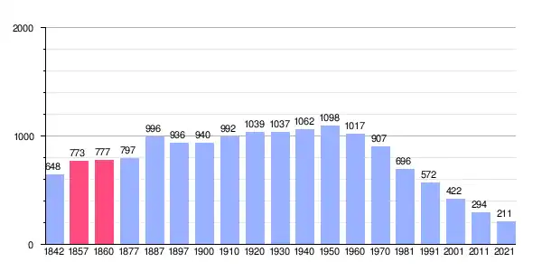 | Gráfica de evolución demográfica de Navalonguilla[5][6] entre 1842 y 2021 |