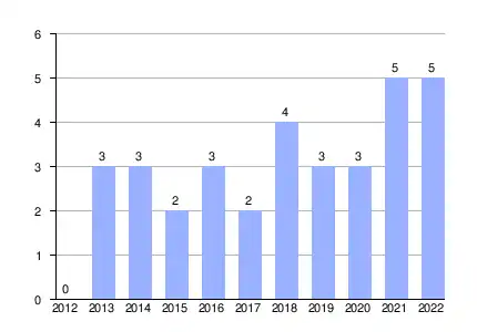 | Gráfica de evolución demográfica de Navapalos entre 2012 y 2022 |