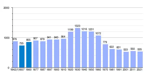 | Gráfica de evolución demográfica de Navas de Jorquera[6] entre 1842(1) y 2021 |