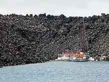 ![]() Barcos amarrados a la grandes rocas de lava |