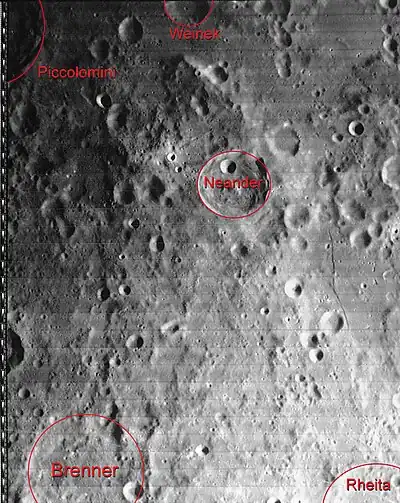 ![]() Localización de Neander. Fotografía de la misión Lunar Orbiter 4 |